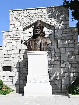 ![]() Памятник Вагифу на фронтоне лоджии здания Музея азербайджанской литературы имени Низами Гянджеви. Скульптор — Джалал Каръягды, 1940[2] | |