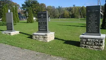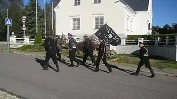 | Флаг волости Вайвара на административном здании | Мемориал в Вайвара | Участники движения военно-исторической реконструкции в Вайвара |