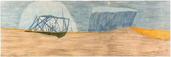 Одно из главных произведений Вайды этого периода - шедевр "Северный пейзаж". Равнина, разделенная на холодные голубые и коричневые плоскости, разделена только формами, напоминающими айсберги и затонувшие корабли. Никто со времен Каспара Давида Фридриха, одного из самых ярких представителей немецкого романтизма, не смог выразить хрупкость человеческого бытия с такой пронзительной силой; человек столкнулся с пустотой пространства и безграничностью природы, но и с уязвимостью человека перед лицом природы". [33]