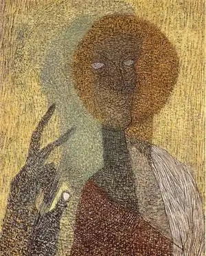 Лайош Вайда (6 августа] 1908 в Залаэгерсег, Австро-Венгрия — 7 сентября, 1941 в Budakeszi) — венгерский живописец и график. С 1927 по 1930 год он был студентом Иштван Чок в Венгерской Академии Изобразительных Искусств. С 1930 по 1934 год он останавливался в Париже и познакомился не только с последними тенденциями французской живописи, но и с выдающимися произведениями русского реализма. Это привело его к драматическим фотомонтажам о великих катастрофах человечества, войне, голоде, вооруженном насилии и страданиях. С 1934 года собирал народные художественные мотивы в Сентендре и Сигетмоносторе. Его стиль сочетал в себе народное искусство и православно-христианскую, римско-католическую и еврейскую символику с абстрактными и сюрреалистическими элементами. Его последние абстрактные сюрреалистические рисунки предвосхищают ужасы Второй мировой войны. Он умер от туберкулеза в 1941 году. "Искусство Лайоша Вайды пылкой силой отражает важнейшие вопросы своего времени. Главной особенностью его творчества является то, что оно сигнализирует о небольших изменениях с сейсмографической чувствительностью, отражающих катаклизмические события Второй мировой войны. Огромная энергия мятежных форм этого искусства всегда находилась в состоянии войны с силами разрушения вплоть до последнего момента жизни Вайды.[2].