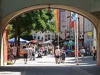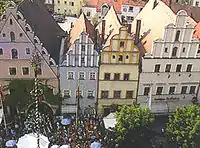 Рыночная площадь расположена между Верхними воротами и Нижними воротами. Также там расположена старая ратуша. «Верхний рынок» с его старинными зданиями примерно с 1540 года располагается между Верхними воротами и старой ратушей. Между ратушей и Нижними воротами находится «Нижний рынок», который служит как для проведения ежегодных, c 1396 года, ярмарок, так и еженедельных (по средам и субботам). Многие жилые дома, окружающие Рыночную площадь, имеют отличительные черты Ренессанса.
