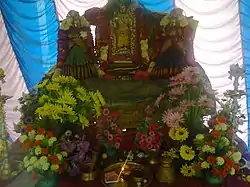 - «Нитья-грантха» изображает реальность Вайкунтхи для описания места встречи Вишну, его божественного трона, к которому восходит вайшнав. «Трон» носит условный и обобщенный характер — под ним понимаются нескольких составных частей: поддерживающая сила, «адхара-шакти»; первичная материя, «пракрити»; черепаха; змей Ананта, представленный прекрасным лотосом, и Земля. Все вместе они символизируют Вселенную. «Трон» Вишну мысленно визуализируется в начале пуджи и затем служит местом поклонения во время всего ритуала. Место пребывания Вишну со своими близкими, где он встречает гостей — павильон, там он находится на лотосе (змее Ананта), в восьми состояниях сознания («буддхи»), на девяти энергиях («шакти» — Вимала, Уткаршини, Джняны, Крии, Йоги, Прахви, Сатья, Ишаны и Ануграхи), пьедестале для йоги («йога-питха»), ложа («парьянка») и внизу с подставкой для ног. Вишну визуализируется на лотосе (змее Ананта) со своей супругой Лакшми.