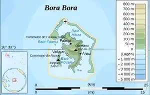 Аэропорт Бора-Бора обслуживает Бора-Бора и Вайтапе; лодки, которые плывут через лагуну, чтобы добраться до островка, окрашены в коричневый цвет. Аэропорт имеет множество направлений на другие острова Французской Полинезии. Air Tahiti — единственная авиакомпания в аэропорту. Если жители хотят совершить международный перелёт, им придется лететь Air Tahiti в международный аэропорт Фааа, который расположен в Фааа, Таити, и является единственным аэропортом во Французской Полинезии, который обслуживает международные рейсы.
