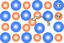 где — число ионов, — энергия, необходимая для удаления одного иона из узла кристаллической решётки, — постоянная Больцмана. При Е~1 эВ и Т~1000 К из формулы следует n/N~10-5[2].