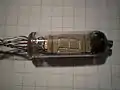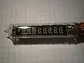 - Индикаторы с цилиндрическим баллоном. Внутри баллона помещена плоская пластина с анодами, к которой прикреплены остальные электроды. Выводы расположены с торца лампы либо с обоих её торцов;