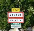 Двухязычный знак (на французском и окситанском) на въезде в Валади