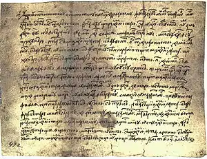 В отличие от предшествовавших этапов балканской латыни (III—VI века), проторумынского языка (VII—XI века) и дописьменного (дако)романского языка (XI—XV века), чью структуру можно лишь пытаться реконструировать при помощи сравнительно-исторического подхода и кропотливого анализа языковых законов, валашский язык нашёл отражение в восточно-романских письменных памятниках религиозно-исторического характера. Первым письменным памятником на валашском считается[6] письмо боярина Някшу, написанное в 1521 году. Валашский, а затем и румынский язык до 1860-х годов пользовались алфавитом на основе старославянской кириллицы (валахо-молдавская азбука).
