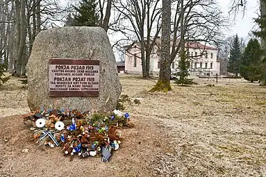 Установлен на месте захоронения советских заключенных, погибших в фашистском концлагере Шталаг 351 в 1941–1944 годах (около 30 тысяч человек), скульптор Антон Старкопф[36]; - мыза Паю (нем. Luhde-Großhof)