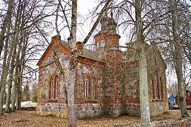 Своеобразная деревенская церковь в стиле классицизма. Построена на месте сгоревшей деревянной церкви в 1831 году. В 1881 году к восточной стене была пристроена полукруглая келья из бутового камня[32]; - Валгаская ратуша