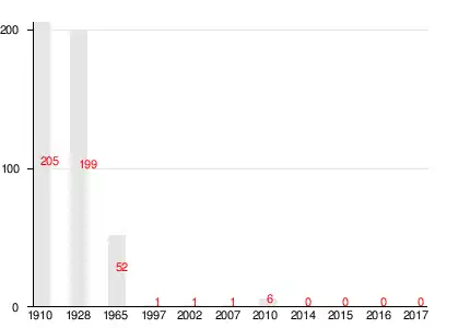 | 1910 | 1928 | 1965 | 1997 | 2007[13] | 2010[14] | 2014[15] |