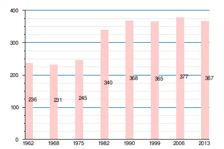 Население коммуны в 2011 году составляло 383 человека[6], в 2012 году — 379 человек[7], а в 2013-м — 367 человек[5].