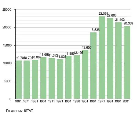 Население составляет 20 471 человек (2008 г.), плотность населения — 409 чел./км². Занимает площадь 50 км². Почтовый индекс — 15048. Телефонный код — 0131.