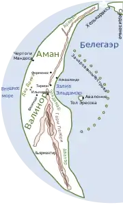 Кроме собственно Валинора, находящегося за Пелори, «берег Валинора», где живут эльфы, тоже считается его частью: