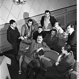 ![]() Максим Валлентин (в центре) с группой актёров берлинского Театра им. Максима Горького | |