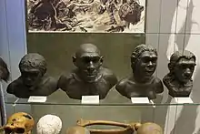 Юноша-неандерталец из Ле-Мустье в экспозиции Дарвиновского музея 5 (первый слева)