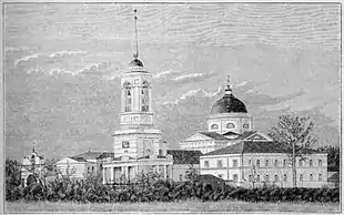 ![]() Валуйский Пристанский в честь Успения Божией Матери монастырь. Литография. XIX век | |