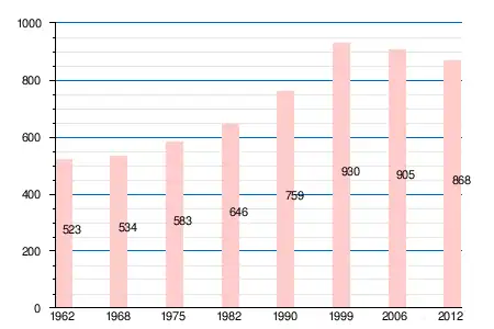 | 523 | 534 | 583 | 646 | 759 | 930 | 905 | 898 | 870 | 868 |
