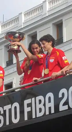 ![]() Амайя Вальдеморо и Элиза Агилар с чемпионским кубком после победы на Евробаскете в 2013 году | |||||||||||||||||||||||||||||||||||