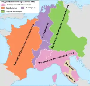 - Из них первый выступал сначала на стороне родственников Теутберги, а затем Лотаря, второй склонялся к мнению поддержать Карла II Лысого.