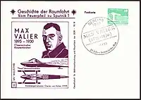 Макс Валье (нем. Max Valier; 9 февраля 1895, Больцано, Трентино-Альто-Адидже, Италия — 17 мая 1930, Берлин, Веймарская республика) — австрийский пионер ракетной техники; один из основателей германского Общества межпланетных сообщений (нем. VfR, Verein für Raumschiffahrt).