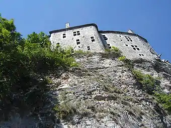 Замок находится на 50-метровой отвесной скале, которая возвышается над рекой Лес. К настоящему времени из прежних фортификационных сооружений остались лишь отдельные фрагменты. Главное здание состоит из двух крыльев, смыкающихся почти под прямым углом.
