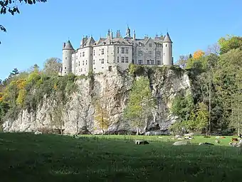 Место, где расположен замок, с древнейших времён было стратегически важным. С одной стороны здесь проходил важный речной торговый маршрут (по реке Лес) в сторону Мааса, а c другой — рядом пролегала дорога из Динана в сторону Франции.