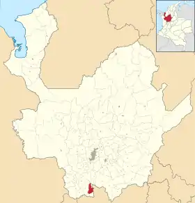 Город расположен в южной части департамента, в гористой местности Западной Кордильеры, к западу от реки Каука, на расстоянии приблизительно 65 километров к югу от Медельина, административного центра департамента. Абсолютная высота — 1348 метров над уровнем моря[1].
