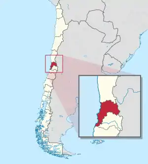 - на юге — области Столичная и Либертадор-Хенераль-Бернардо-О’Хиггинс