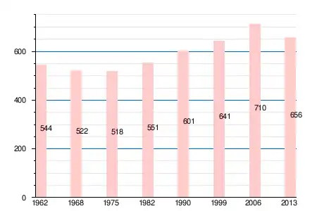 Население коммуны в 2011 году составляло 694 человека[6], в 2012 году — 669 человек[7], а в 2013-м — 656 человек[5].