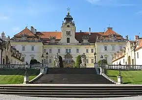 Дворец Вальтице построен на месте замка семьи Лихтенштейн, который известен с XIII века. Первоначально проект дворцового комплекса разрабатывал архитектор Джованни Джакомо Тенкалла. Затем в начале XVIII века проект был развит в стиле высокого барокко, архитектором Иоганном Бернхардом Фишером фон Эрлахом в качестве резиденции князей Лихтенштейнов.