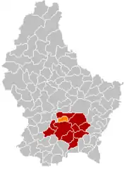 Оранжевый цвет - коммуна Вальферданж, красный - кантон Люксембург.