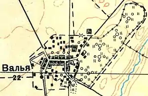 Деревня Валья обозначена на карте профессора С. С. Куторги 1852 года[10].