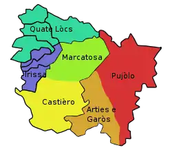 Валь-д’Аран делится на 6 исторически сложившихся районов, которые также являются избирательными округами.