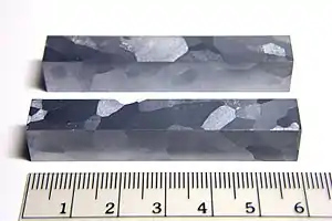 Свыше 90 %[16] всего производимого ванадия находит применение в качестве легирующей добавки в сталях, главным образом, высокопрочных низколегированных, в меньшей степени, нержавеющих и инструментальных, а также в производстве высокопрочных титановых сплавов[17], основанных на системе Ti-6Al-4V (в российской классификации — ВТ6, содержит около 4 % ванадия). В сталях ванадий образует мелкодисперсные карбиды VC, что повышает механические свойства и стабильность структуры. Его применение особенно эффективно совместно с вольфрамом, молибденом и никелем. В конструкционных сталях содержание ванадия не превышает, как правило, 0,25 %, в инструментальных и быстрорежущих доходит до 4 %. В российской номенклатуре сталей ванадий обозначается буквой Ф.