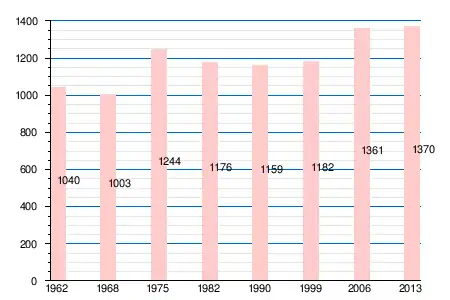 | 1962 | 1968 | 1975 | 1982 | 1990 | 1999 | 2006 | 2008 | 2011 | 2012 | 2013 |