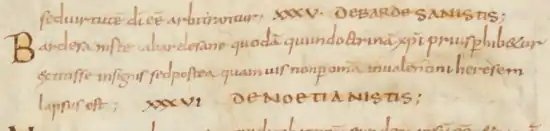 - Аврелий Августин («Ереси, попущением Бога, в одной книге») Augustinus. «De Haeresibus ad Quodvultdeum Liber Unus».