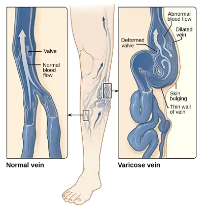 Варикозное расширение вен нижних конечностей, варикозная болезнь (от лат. varix, род. п. varicis «вздутие») — расширение поверхностных вен нижних конечностей, сопровождающееся несостоятельностью клапанов и нарушением кровотока: разновидность варикозного расширения вен.