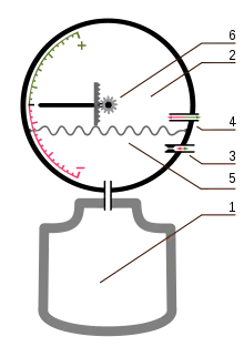 Вариометр измеряет разность давлений воздуха в атмосфере и внутри корпуса прибора, сообщающегося с атмосферой капилляром. Эта разность давлений возникает при изменении высоты полёта и исчезает, когда летательный аппарат летит на постоянной высоте. Предназначен для измерения и индикации вертикальной воздушной скорости ВС при снижении или наборе высоты. Принцип действия основан на измерении скорости изменения статического давления при изменении высоты полёта. В состав конструкции входит блок манометрической коробки, стрелка, капилляр, трубопровод, шкала.
