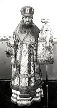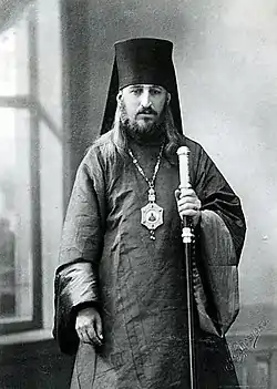 По происхождению крестьянин, получил только начальное образование. Приняв в 36 лет монашество, а затем священный сан, стал быстро продвигаться по служебной лестнице. В 1911 году стал викарным епископом Каргопольским. Пользовался противоречивой славой: с одной стороны, благодаря происхождению и необычным проповедям, пересыпанным народными изречениями, был популярен среди простого народа, но за это же был отвергаем потомственным духовенством и «высшим обществом», которые видели в нём проходимца по причине не только происхождения и подчас дерзкого поведения, но и из-за репутации ставленника Григория Распутина[1]; известно, что Григорий Распутин звал его «сусликом»[2]. Вершиной его противоречивой карьеры стало пребывание на Тобольской и Сибирской епархии в 1913—1917 годах. Не чурался политики: был участником монархического движения в предреволюционной России и членом Русского собрания. Наряду с рядом других иерархов, имевших репутацию «распутинцев», был уволен на покой сразу после падения монархии в России. После Октябрьской революции заявил о своих симпатиях к новой власти и стал первым епископом, начавшим сотрудничать с ВЧК.