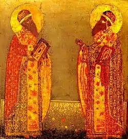![]() Святители Гурий и Варсонофий, Казанские чудотворцы (икона XVIII века) | |