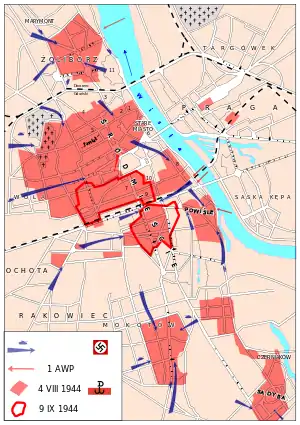 ![]() Схема восстания, 1.08 – 2.10.1944 | |||
