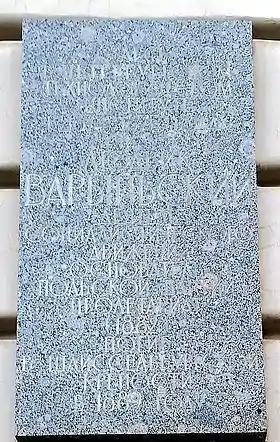 - Мемориальная доска установлена на здании Технологического института в Санкт-Петербурге
