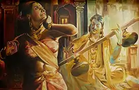 ![]() Картина маслом Раджасекхарана Парамешварана, иллюстрирующая сцену из романа | |