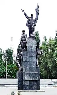 Одной из наиболее крупных работ тех лет, среди сохранившихся, является скульптурная группа «Памятника Коммунарам»[5]. Его высота 8,5 метров. Представляет собой четыре фигуры на постаменте: рабочий с развернутым знаменем, солдат, матрос и студент. Памятник был открыт 17 мая 1958 года на пересечении проспекта Воронцова с улицей Каруны в Днепропетровске, на месте захоронения сражавшихся с австро-немецкими оккупантами, петлюровцами и деникинцами в 1917—1919 гг[6]. Архитектурное решение сделал известный украинский зодчий — Дмитрий Скоробогатов[7].
