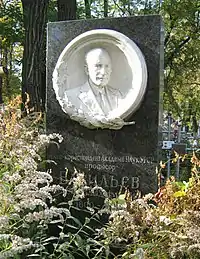 Скончался 14 августа 1956 года. Похоронен в Киеве на Лукьяновском кладбище (участок № 16, ряд 6, место 5). Надгробие — высокая прямоугольная стела из черного гранита, медальон из белого мрамора. Скульптор Морозов.