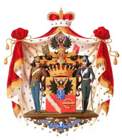 Графский герб был совершенно с теми же эмблемами и отличался от княжеского только тем, что последний покрыт княжескою шапкой и расположен на развернутой русской княжеской мантии.