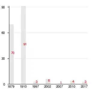 Число жителей по семейным спискам 1879 г.: 29 м. п., 41 ж. п.; по приходским сведениям 1879 г.: 34 м. п., 46 ж. п.[2]