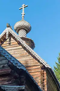 Среди замечательных экспонатов деревянного зодчества, представленных в музее, особо стоит отметить церковь Преображения (1732) клетского типа, привезённую из погоста Спас На Сози (Калининский район), Знаменский храм (1742) и часовню Архистратига Михаила (середина XVIII в.).[3]