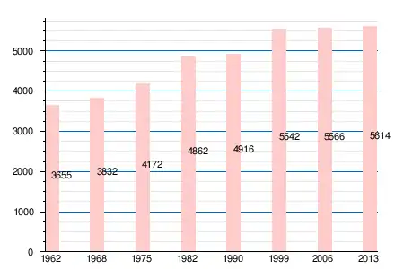 Население коммуны в 2011 году составляло 5628 человек[6], в 2012 году — 5662 человека[7], а в 2013-м — 5614 человек[5].