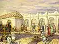 «Книжные лавочки на Спасском мосту в XVII веке». 1916. Бумага на картоне, акварель, уголь, белила, карандаш. 50 × 67. Музей Москвы, Москва